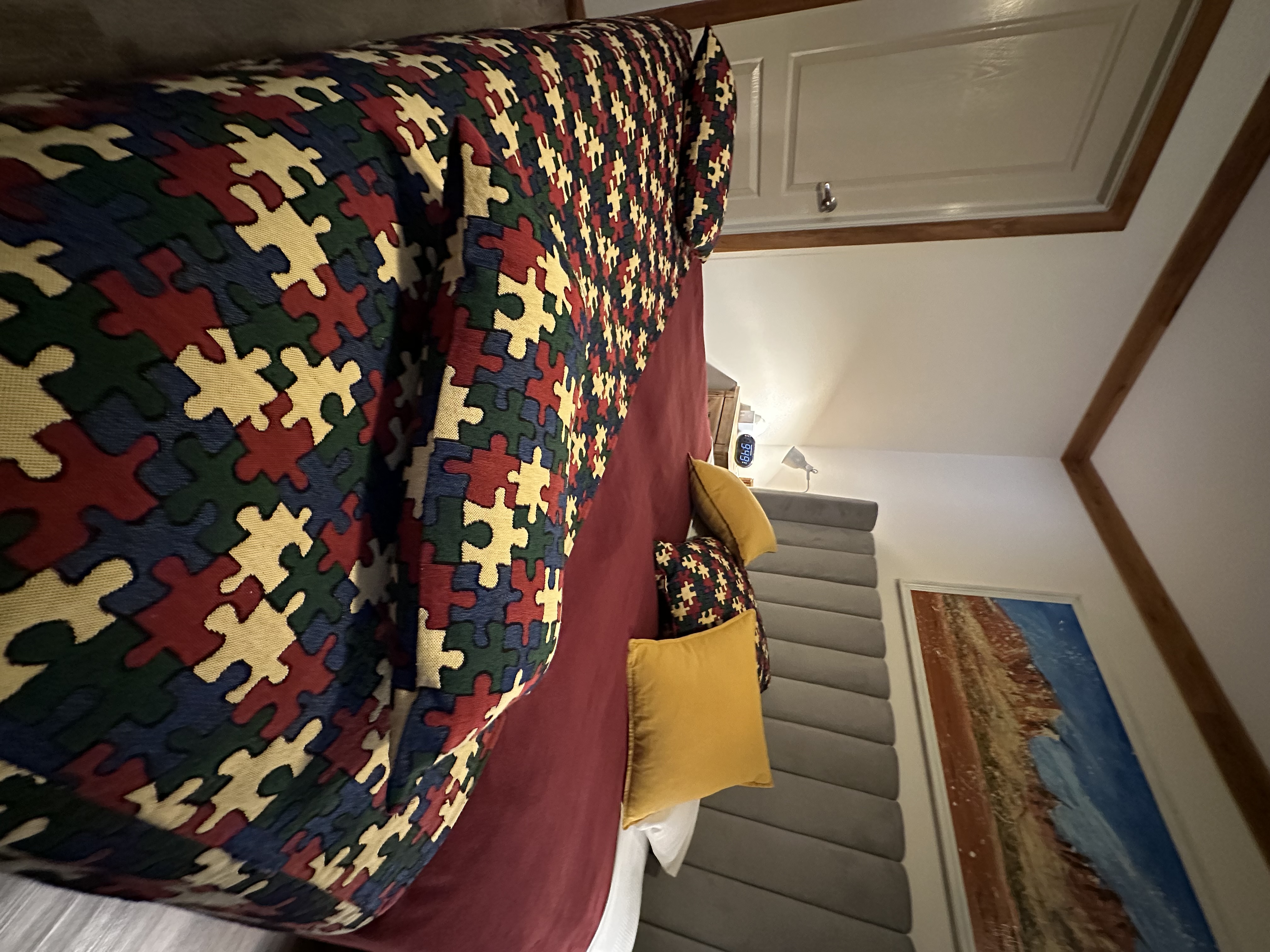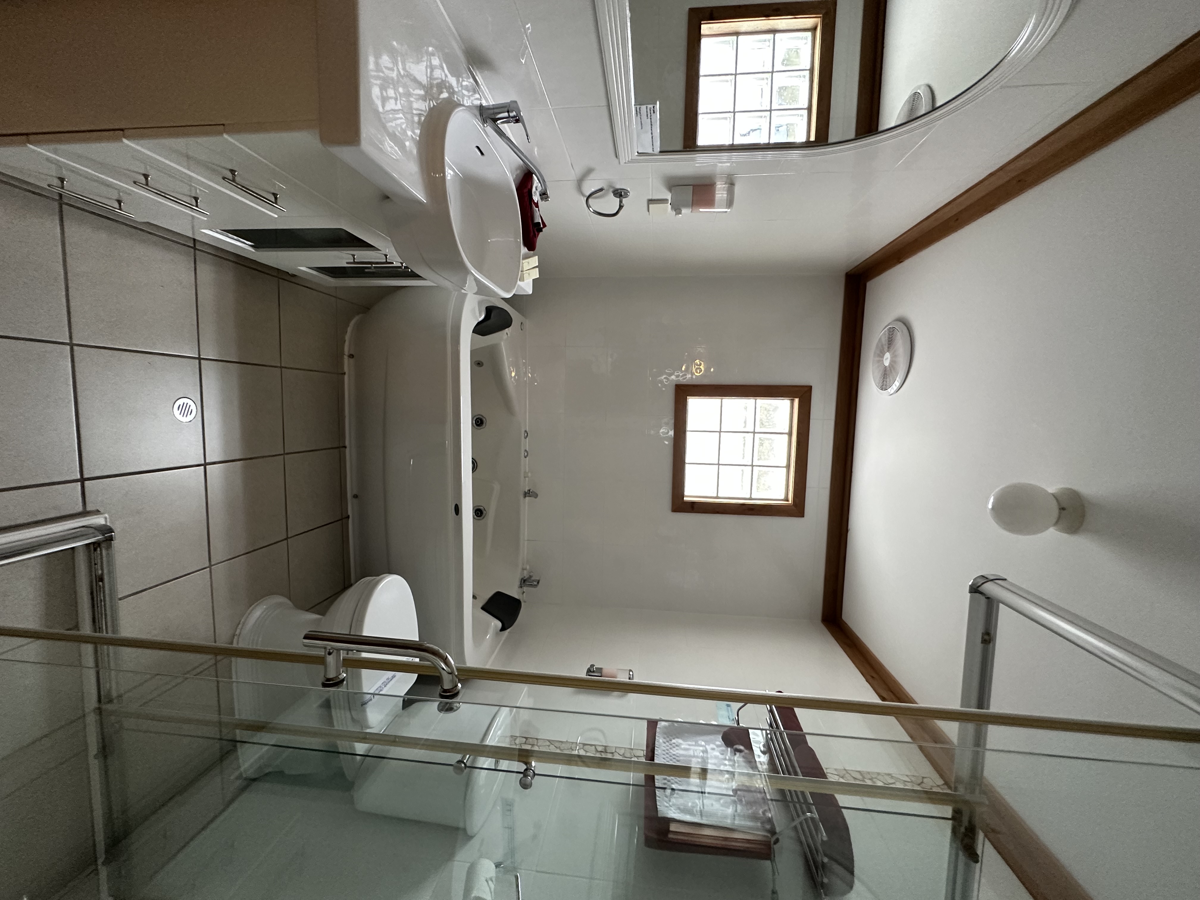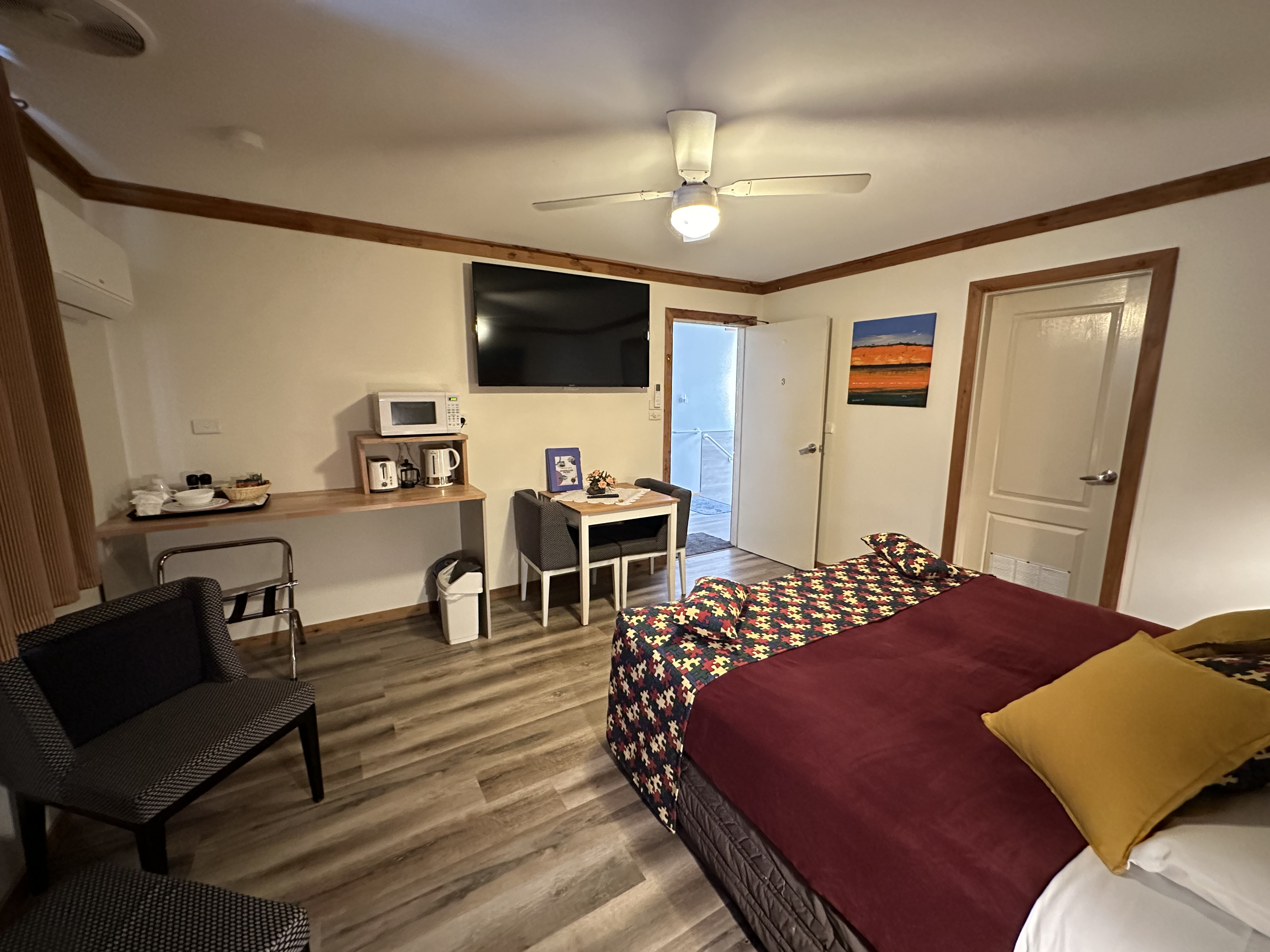 This room type typically features a large king-size bed and a luxurious bathroom with a double spa bath, which can comfortably fit two people. Other room features may include air conditioning, a TV, and a mini-fridge. Some people call this our "Romance Room" or "Honeymoon Suite."
